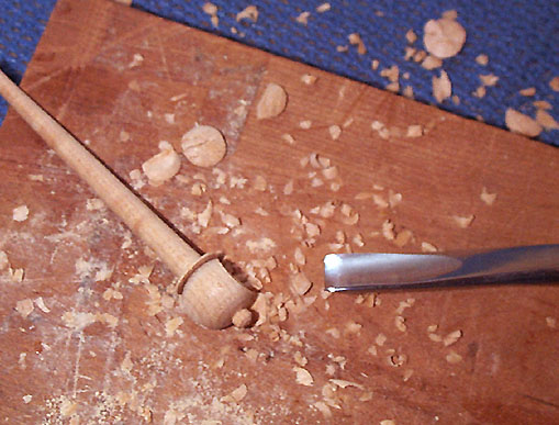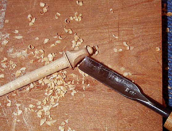 さてグリップ部分の成形です。まずは丸ノミでおおざっぱに落としていきます。