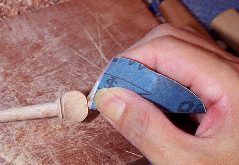 頭のピンの部分(pipといいます)をサンドペーパではさんでおいてペグの軸をクルクル回しながら形を整えてやります。しつこくやると磨耗して無くなっちゃいますので用心されたし。