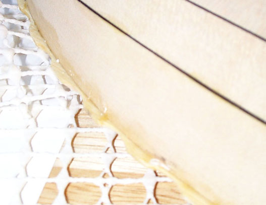 ヒモが巻いてあるうちはニカワを拭き取るのが難しいのです。あとでスクレーパでていねいにはがします。