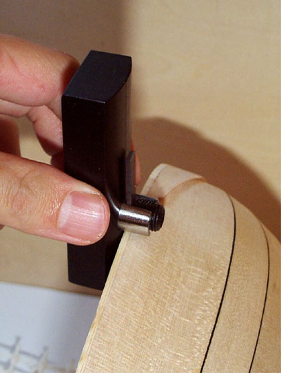 さて、ビンディングの材料ですが、今回は既成のものを使っています。メイプルを染めたもので黒-白-黒の3層です......じつはリュートではこういったはめ込みの装飾はほとんど見られずむしろムク材の1色のことがほとんどです。後期のマンドリーノには3層のものやじつに様々なスタイルはありますがバロックリュートを製作するのであれば注意が必要です。ルネサンスリュートにはビンディングは基本的に付けません。