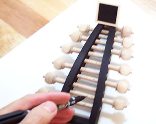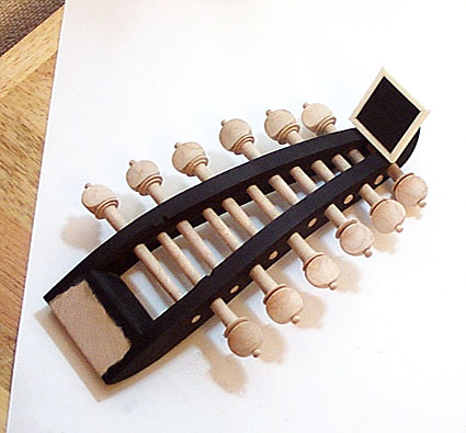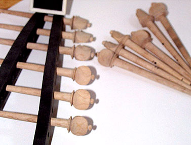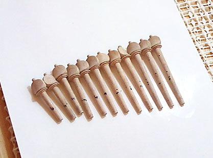 この時点で、ペグのきつさや回しやすさは調整しておいたほうがいいのですが染め作業を行うと木が膨張するので覚えておきましょう。乾いた状態で具合をみるべきです。