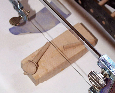 先端部を糸のこで切り落とします。