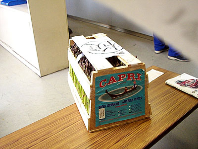 徒歩2分で日航貨物ビルに着きました。さてJALの貨物窓口で荷物を受け取るための申請をします、つまり「デリバリー・オーダー」の用紙を提出するわけです(ひきかえに荷物引換票をくれます)。このときの手数料は365円。倉庫から荷物がカウンターに持ち込まれるまで十数分かかるのでしばらくイスに座って待つことにします。期待通り、そこでは各国の個人輸入フリークと運送業者が出入りして、またしてもフクザツな人間模様を展開します。ふと気が付くと、さきの税関ビルで見かけた皆さんも数名います。おぉ!同士よ!? JAL以外でも海外からの輸送は扱っていますがほとんどは日航のためか、税関庁舎ビルからJAL倉庫への人の流れは多いようです。一人の若者が入ってきて座って待っている私の目の前のテーブルにアスパラガスを置きました、今からなにやら手続きのようです。よく見るとアスパラの箱には検疫を示す「検」の大きな貼り紙があります。そうかと思えば黒人のお兄さんが窓口の事務のお姉さんに向かってなにやら怒っています。隣のベンチでは韓国人らしき男性が頭をかかえてひたすら待っているようです。どこぞの運送会社の社員3人組が豪快に談笑しながらやってきて、あっというまに手慣れた応答で手続きを済ませて去って行ったり...........期待したとおりの引き渡し現場の人間模様は続きます............。