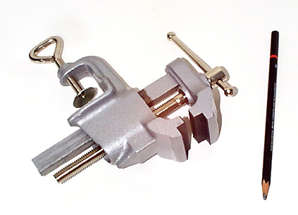 いわば万力のちっちゃいヤツだと思えばいいでしょう。大きいのが欲しかったのですが移設がたいへんなのでこれにしました。今考えてみればもっと大きいほうがダンゼンいいですね、ちょっと反省....研磨以外にもブリッジやペグのようなパーツをちょいとつかませておき、両手が使えたりするわけです。ナットやサドルの加工のほかインレイ用基材の加工など....用途は様々ですがワークベンチで済むものもありますので要検討といったところ...。これはゴムの保護シートとL字の溝があってそれはそれなりに好都合なのですが.......やはり大きいのを買おうかな? そのまえにガッチリしたワークベンチを買うべきかな?