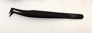 1本あればなにかと便利なモノのひとつがコレ、ピンセット。形状も様々ですが耐磁性のものとかテフロンのように腐食しにくいとか....まあ、楽器製作では簡単なものでかまわないと思います。ロゼッタをはじめとする装飾行程で有るととても重宝します。この写真はいちおう耐磁性ですが電子工作(いまどき?)の場合はあえて帯磁させてビスをくっつけて使うこともあります(ああ、懐かしい....遠い目)。