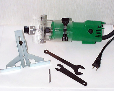 う〜〜〜ん、これも必要かどうかは難しいところですがギターの場合はビンディングの加工作業が非常に楽にスピーディになりますので、あれば重宝します。但し、このようにサイズの大きなものは重くてたいへんです。あと、付属品にも注意しましょう、湾曲部分にあてがうガイドがないとギター製作では使えませんので、オプションかどうかを確認してから購入しましょう。ビットにはハイス鋼と超硬とに大きく分かれますが超硬でないと熱ですぐに切れなくなります。