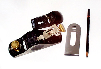 おなじみスタンレー社のカンナです。これは以前はよく使っていたのですが、けっこうな重量なので現在では予備として使っています。刃の長さと角度が調整しやすいのですが....。じつは別売りの日本製の替え刃があって、その名も「サムライ」というブランドで売られています、それは高価ですが、かなりイイらしいです(ハンズの担当者も知らなかった...)。たしかSAMURAI替刃は丸一商店のカタログで見かけたような覚えが........。