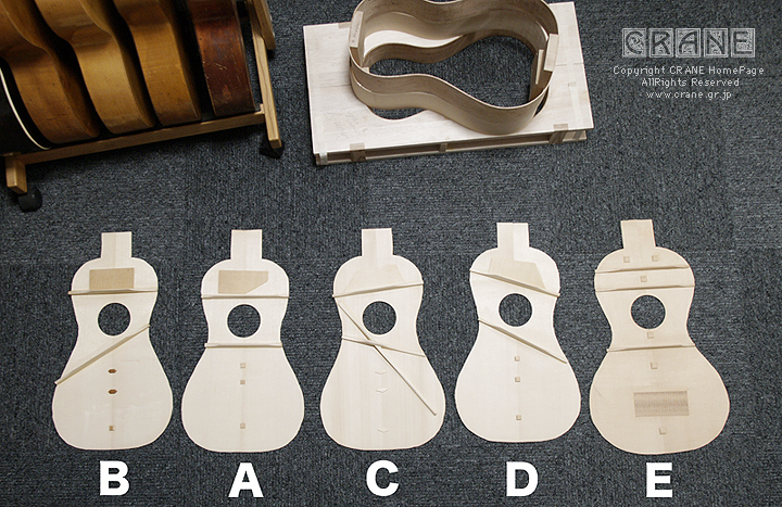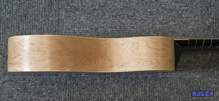 PIC 005 : サイドはバーズアイメイプルの板目、バックは硬さの異なるメイプルが半分づつ。