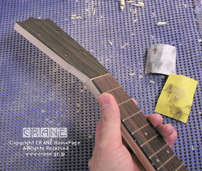 ネックがおおむね成形できたら指板と接着します。