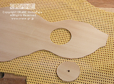 さぁ、染め作業もそこそこに表面板を作ってボディを完成させましょう。表面板は1983年のジャーマンスプルース。じつは端材を使っています。そのため木取りはギリギリで木目を斜めに設定します....... じつは、これはこれで個人的には気に入ってます。バーの配置はどうするかって? ここでは木目に直交する作法を適用します。