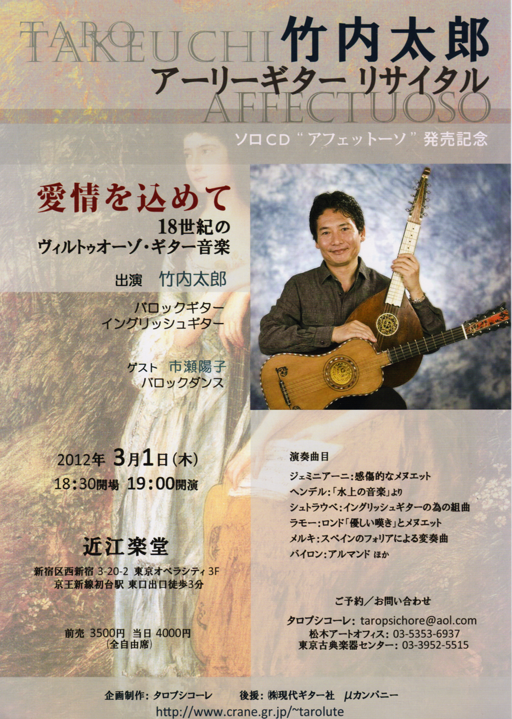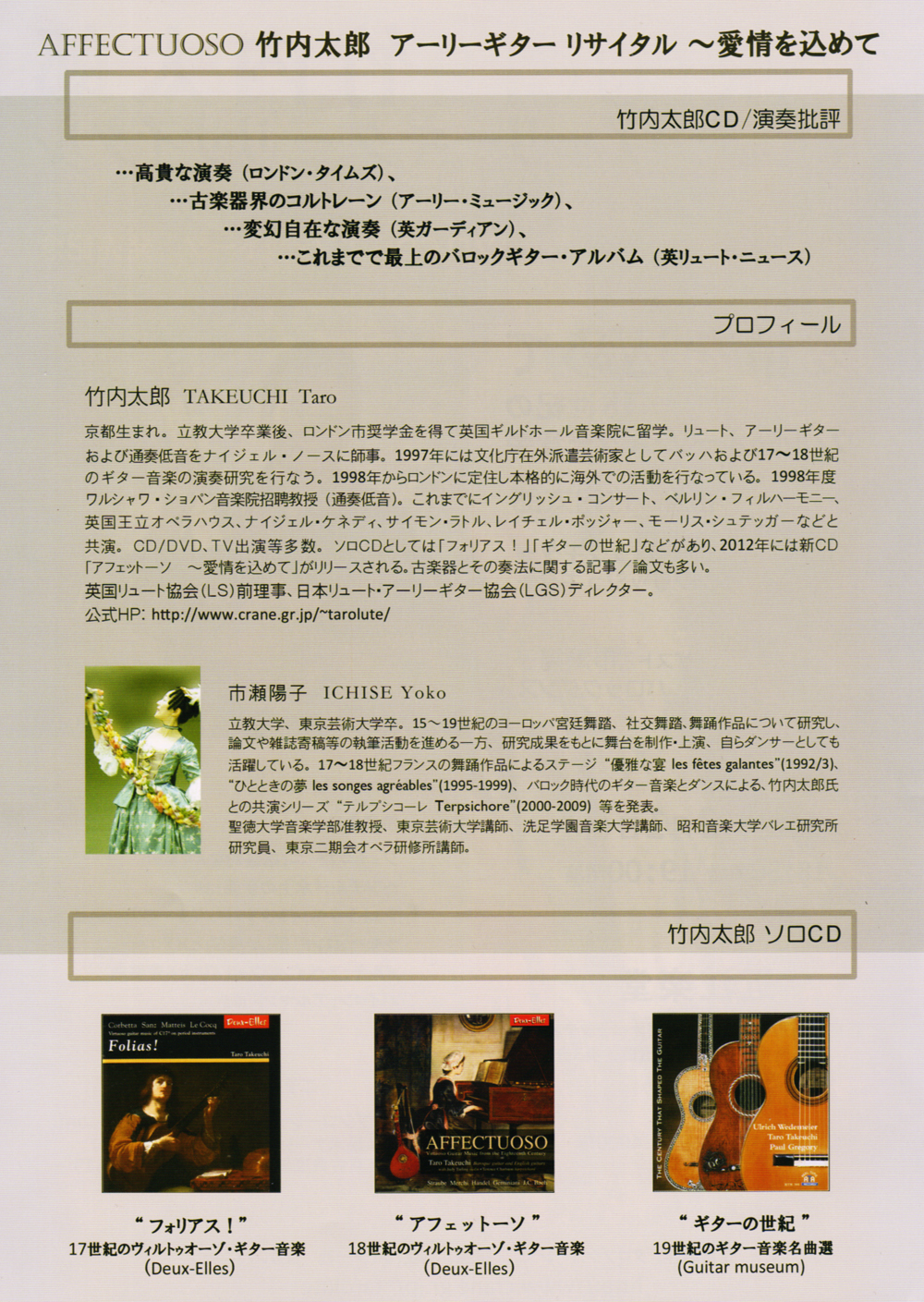 ● 新刊CD案内:「アフェットーソ 愛情を込めて」18世紀のヴィルトォーゾ・ギター音楽:竹内太郎