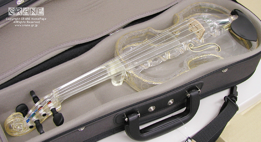 ● ガラスのヴァイオリンも紹介しておきましょう。チェロよりも先に完成し、数々の問題を克服して作られた労作。このヴァイオリンがあったからこそチェロも完成をみたのです。