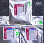 粉の現像セットは3つの銀色の袋があって、それぞれ 番号1、番号2、番号3と書いてあります。