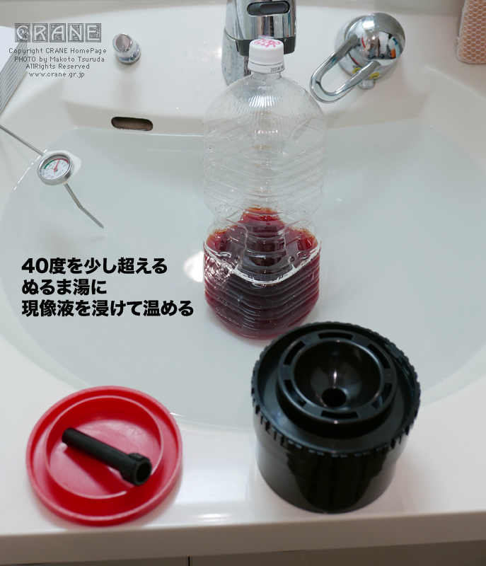 現像液は使うときに現像タンクで少し冷めるのでおおむね39度ぐらいになります。