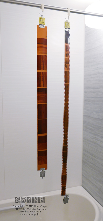 フィルムを吊して乾かします。オモリ付きのフィルムクリップがあれば便利です。