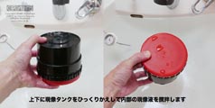 現像タンクに「現像液」を入れてフタをし、3分30秒フィルムを浸した状態で撹拌します。