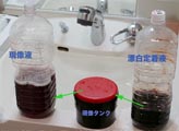 時間になったら漏斗を使って元のペットボトルに漂白定着液を戻します。