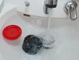 ひっくり返すとき以外は洗面台に張ったぬるま湯に浸しておきます。