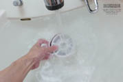 (6)次に5分程度 流水で水洗いします。