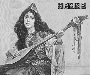 このお姉さんの足の組み方に注目。つま先を立てて、こう........... 現代でもこういう楽器の構え方をしませんか? アナタ!? 覚えがあるでしょ? ギターショップに行って足台が無いときにこうやるでしょ? でしょ? 私もときどきそうしてます。それにしてもじゅうたんの上に椅子を置いて周囲はバラの花が散乱しており、おまけに背後に大きな壺が見えて、なにやらタダ事ではなさそうです。お姉さんは涼しい顔をしていますが、きっと演奏がうまくいかなくて、こう、カッ! となって半狂乱でキィ〜〜〜ッ!! と花束をかきむしり........... ようやく落ち着きを取り戻して放心状態でアンコールといったところでしょうか(なんて勝手な解釈)。