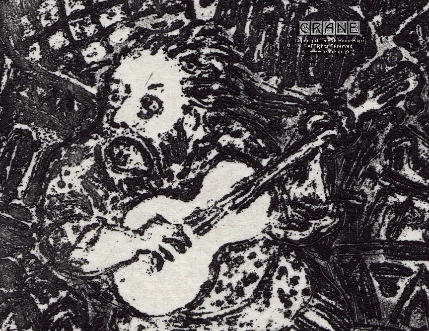 さて、鶴田の版画コレクションのなかから弦楽器に関する作品を紹介するこのコーナー。今回はさらに時代を下って現代の作家です。鉛筆サインで 05 とあるので 2005年の作と思われます。