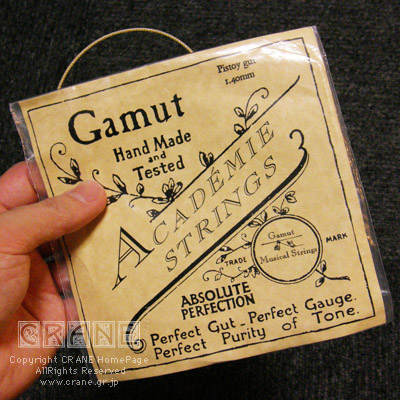 知る人ぞ知る有名な文献でもあり、この冊子に掲載されている図版は現代の楽譜や音楽雑誌に引用されているのをよく見かけます。イギリス(製造販売はアメリカ)の羊腸弦メーカー「ガムート社(Gamut)」はこの版画のなかの巻弦製造の図を自社製品のパッケージに採用しているほどです。