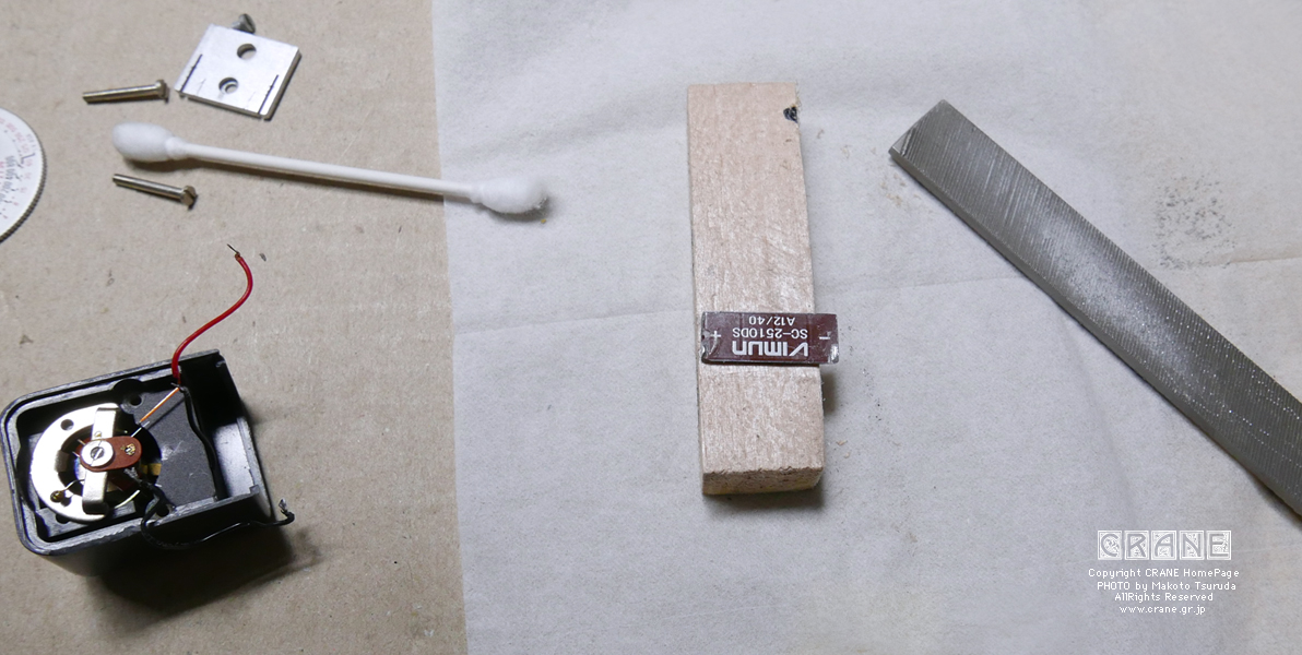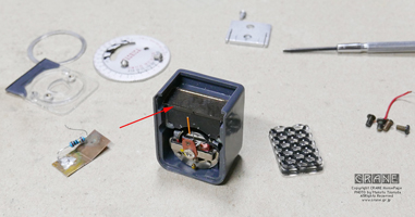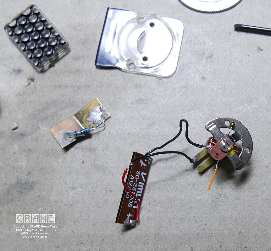 オークションで(1000円ぐらいだったかな?)この露出計をやっと探して入手したものの、ホントに壊れて使えない状態。ひとまず分解して接点を磨いたりすれば甦生することもあるのですが、試したところどうやら難しい。幸いなことにメーターは生きてます。