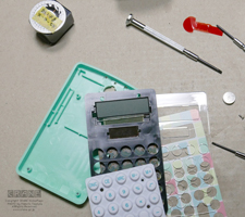 なんのことはない、100円均一ショップで売っている電卓をバラして光電池を交換するだけです。