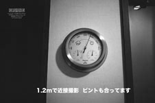 開放で暗い室内の気圧計を撮影しましたが、1.2mの距離でも狙いどおりにピントが合います。これだけ経年を経ても基本機能は良い部類の個体でしょう。