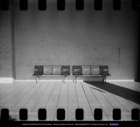 実際、ISO100のフィルムを使って夜間や室内でも手持ちで撮れるようにできています。やたらシャッター速度が長い傾向があります。シャッターボタンを押して10秒ぐらい待ってもシャッターが切れず、壊れたかな?と思ってカメラのレンズをのぞき込むと ぺちゃ! と情けない音でシャッターが切れる。