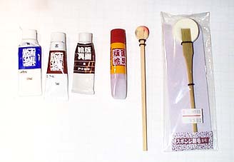 タンポ:これは楽器の塗装にも使えます。画材店に売っています。これはスポンジ製ですが、べつに食器用のスポンジとかでもOK。
