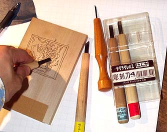 版木:文房具店や画材店、あるいはデパートでも売ってます。