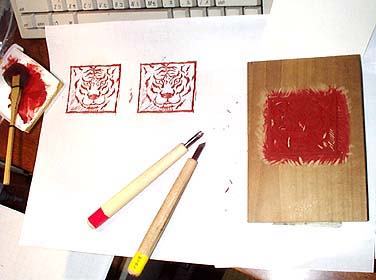 ● 昔は浮世絵を製作するのに「絵師」、「彫師」、「刷師」という分業でやっていたらしいのですが、ト〜ゼンここでは一人でやらねばなりません。もし気に入らない部分があったならば修正して刷りながら具合を見ればいいでしょう。