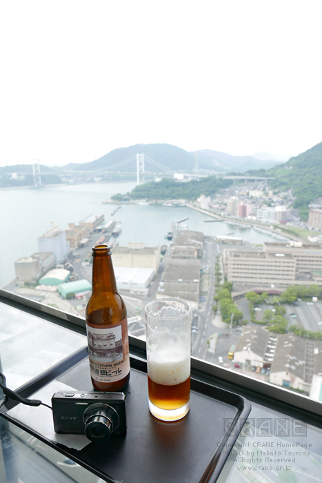 エスカレータで一気に31階へ昇り、まずはビールを注文(え!風景見ないの?)。御当地の門司港駅ビールが先です。あぁ、今日も暑かった!