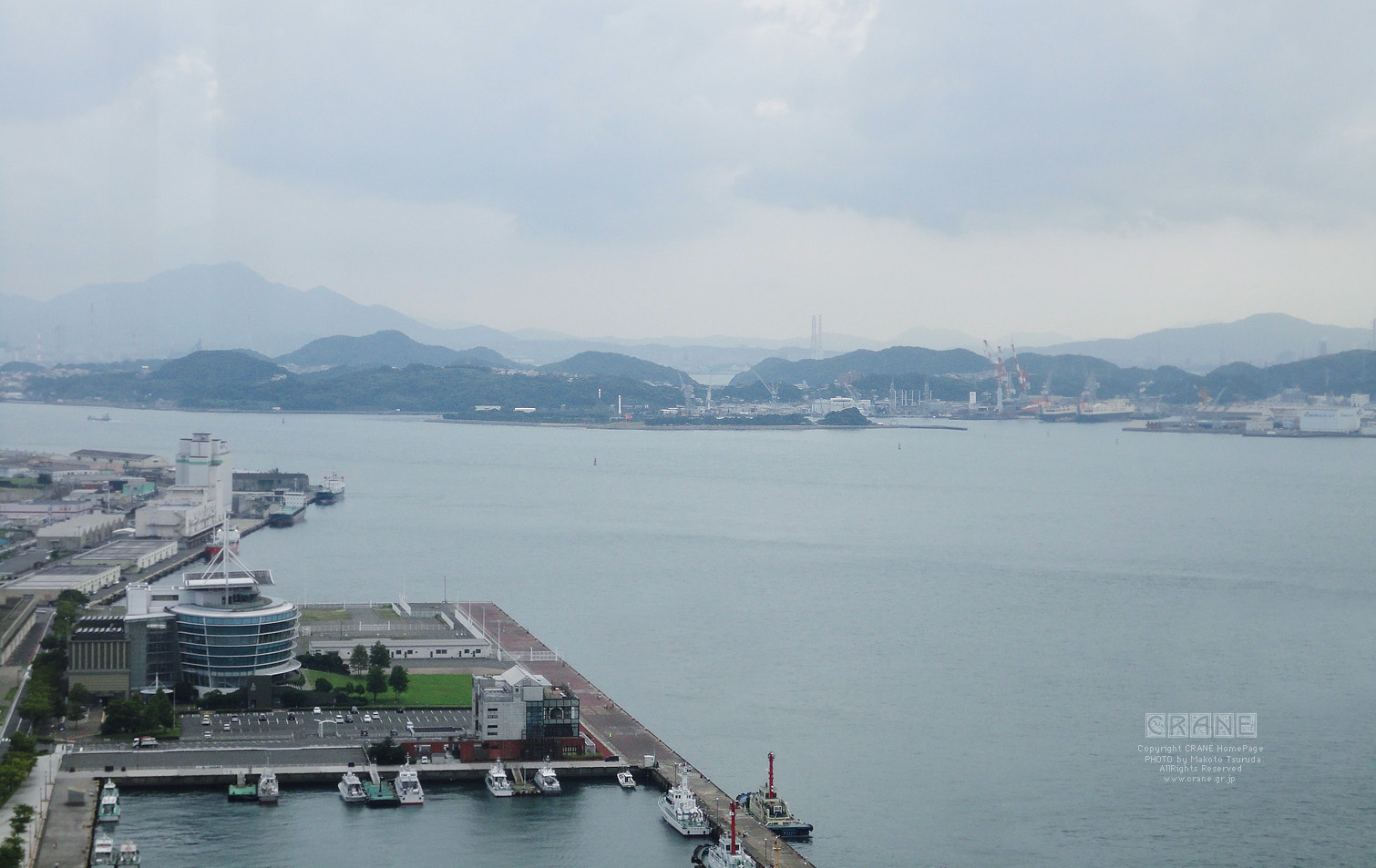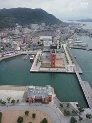 写真2:西方向。マリンゲート門司から唐戸港へ向かう連絡フェリーが見えます。写真中央手前にあるのが門司港ビール工房。