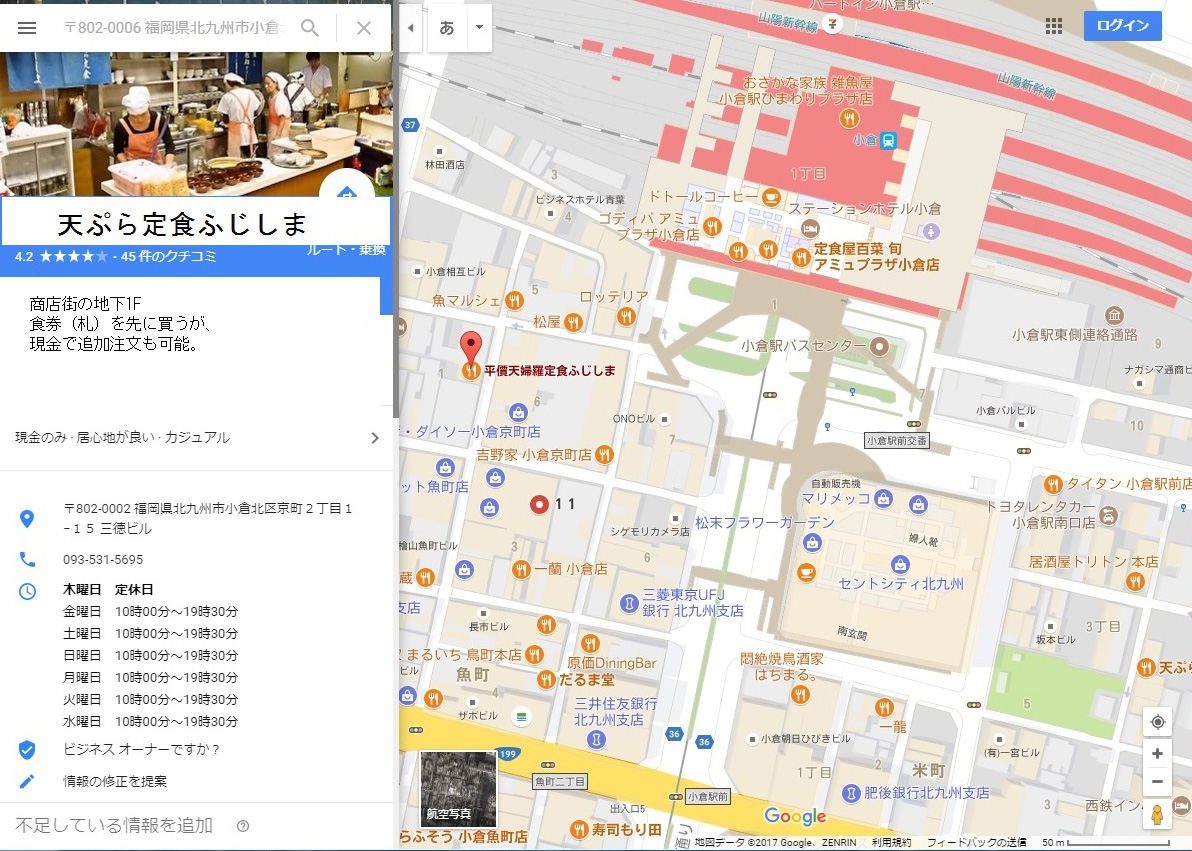 ・天ぷら定食 ふじしま Googleマップ