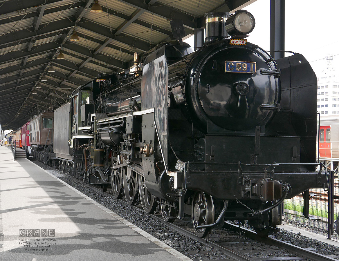 C59にウットリ。男らしい造形ですな。こういった理屈っぽくてフクザツな構造物に鉄道員の息子は弱いのであった ... 。