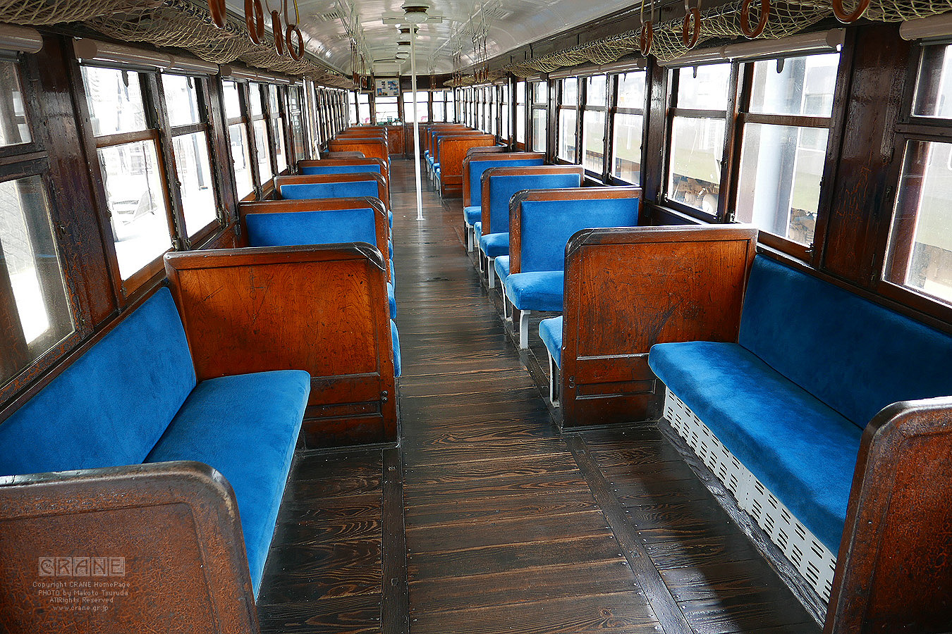 歴代のだいぶ昔のヒストリカルな車両も展示されていますが、こういった木製の座席などは、私が中校生の頃にはまだ使われていました。思えば木製の座席というのはゼイタクですね。今となってはコストがかかりすぎて現実的ではありませんな。速度は遅くとも豊かな時代だったのだと思います。
