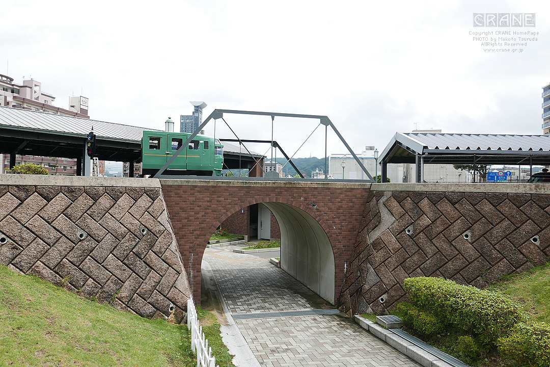 時速15km 関門海峡の潮の流れは時速18kmというので、ママチャリに抜かれるぐらいの速度です。車内アナウンスいわく国内で最低速度・最短距離の鉄道なのだと。なるほど、ものは言い様ですな。窓が解放されている(というか窓が無い)ので風が心地良いです。しばらく走ると左手に港が開けてきます。ホラ、やっぱり左に座った方が良かったでしょ? 関門海峡と門司港の港町が間近に迫りますが、撮影時間はごくわずかです。あっというまに景色は過ぎ去ります。