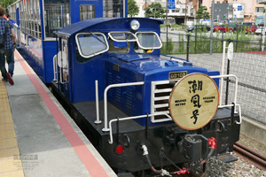 ディーゼルエンジンを積んだちっちゃい機関車で、現在の軽自動車ぐらいの大きさです。色がブルートレインしていてカッコイイ(浮世絵や江戸後期有田焼のベロ藍カラーですな)。この機関車は潮風号と名付けられています。昭和55年頃の製造で55馬力/1000rpm しかありませんが、ぴょこんと跳ね上がる窓がカワイイので我が家にも通勤用に一台欲しいところです。もっとも、... エアコンは付いてません。質実剛健な昭和のデザインが素晴らしい。