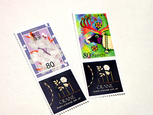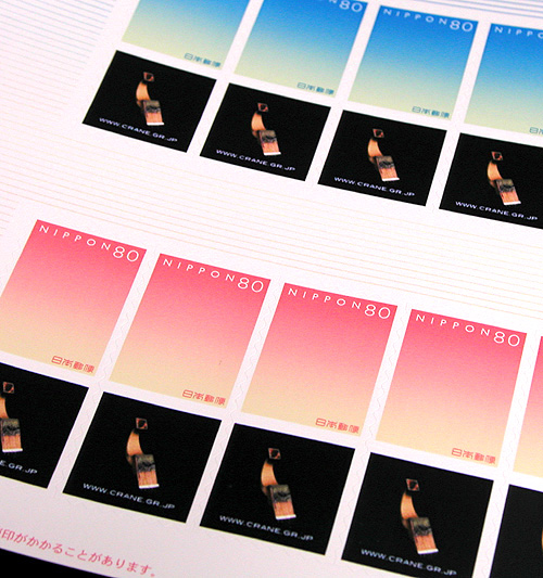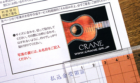 まぁ、それでもこの切手を受け取った方には珍しいようで、今までに私が送った郵便物の数件に「CRANEオリジナル切手」を貼って差し出したところ、ほぼすべての方々から反響のメールがありました、「この切手ナニよ?」。本来はプリクラ(そろそろ死語でしょうか)気分で仲間同士やペットや結婚式の写真を切手として製品化するといった目的のサービスです。しかし、考えようによっては小規模なお店や個人事業主でも配送物にこのような切手を使えば受け取ったお客さんからの印象も変わるでしょう。郵便局に注文するときは「写真」原稿ということになってはいますが、私はパソコンのプリンターで印刷したもので申し込みました。もちろん楽器の写真にCRANEのロゴとURLまでレイアウトして..... 。