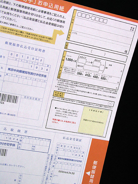 じつは私が注文したときには申込書を差し出したとたんに窓口の局員は動きが止まりまして..... そのまま局員は姿を消しました。そう、はじめてこのサービスを受け付けたようで裏にまわって確認しているようでした。前もって知らされていないのでしょうか? しばらくして戻ってきて処理を続行...... 代金振り込みが終わって半券を受け取って帰ろうとした私に....... 窓口局員は写真のついた申し込み用紙を私に差し出します.............. ???????............