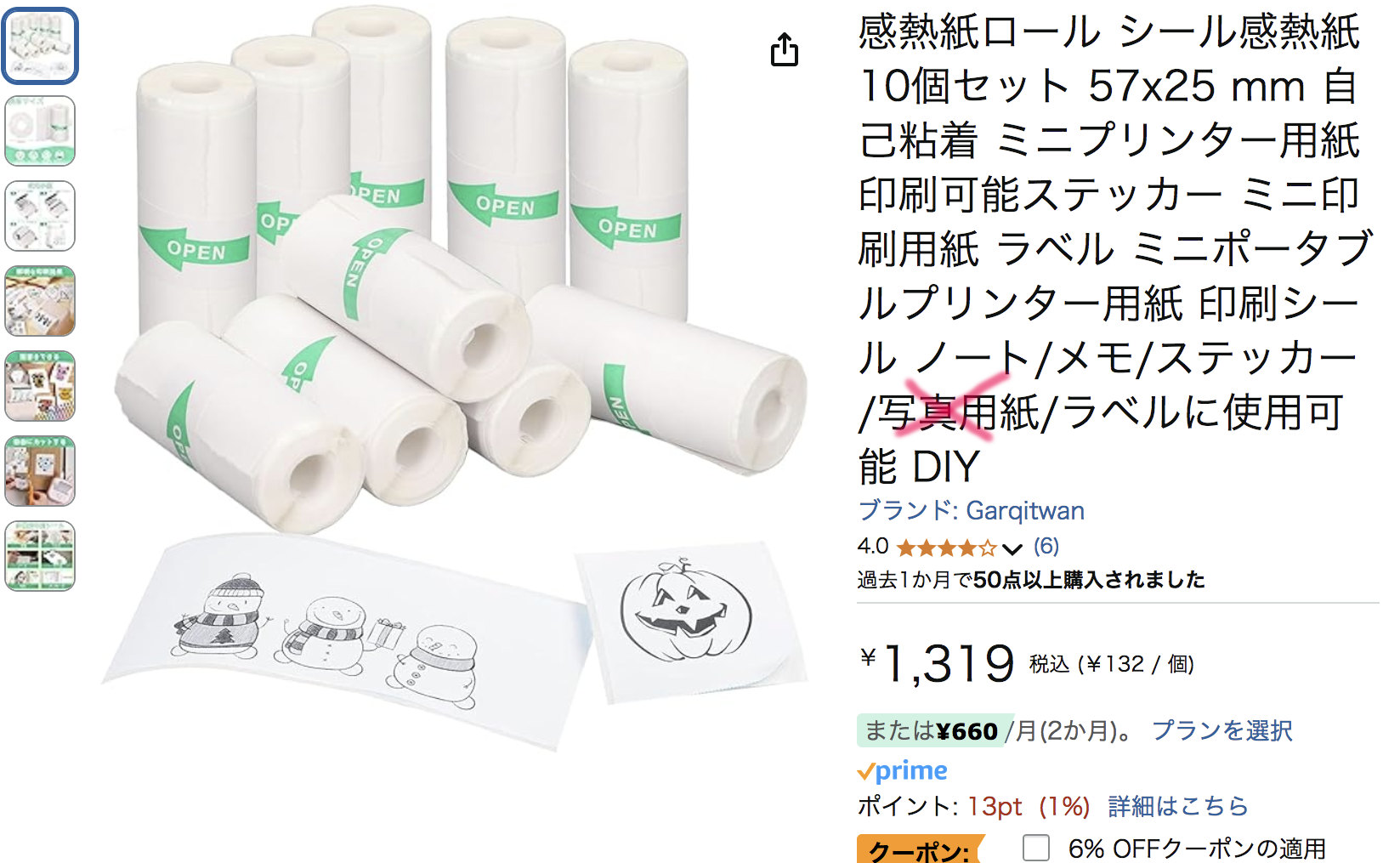 印刷面は48x63mmなので名刺より少し小さい