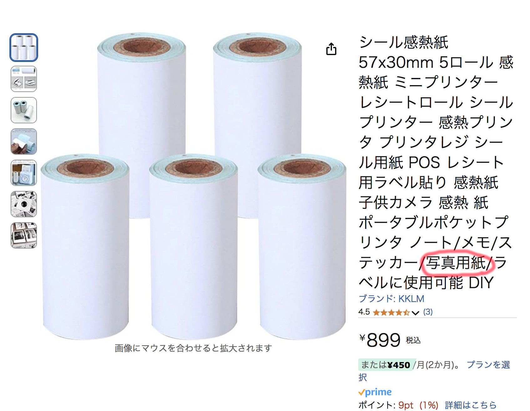 57x30mmの感熱式レシートロールが使える