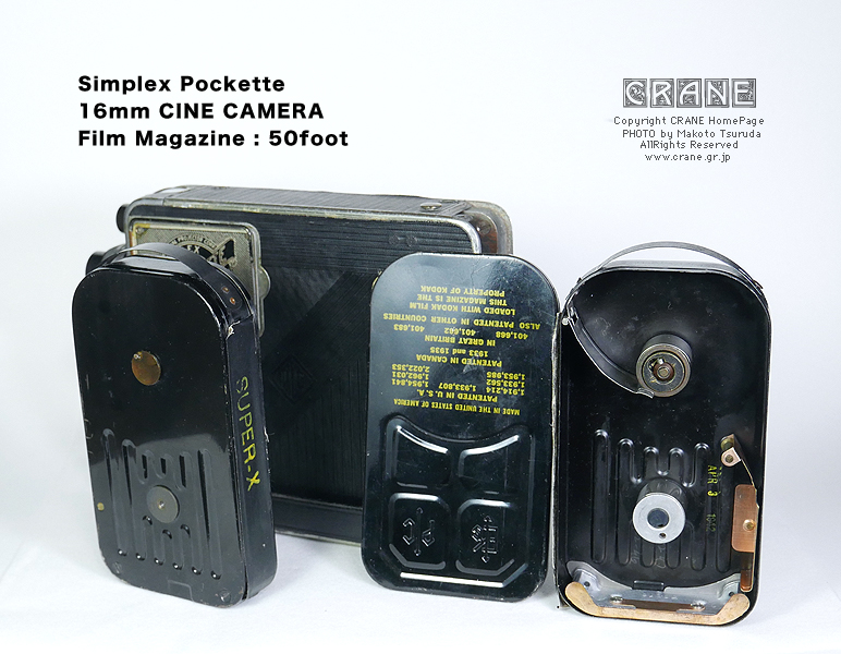 ・使用フィルム:Simplex Pockette は16mm幅の両目及び片目フィルムの両方が使える(掻き下げ爪が1本なので)。