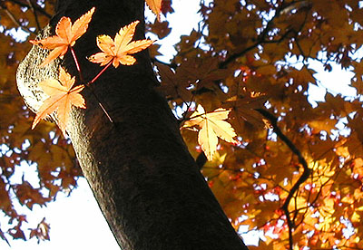 オリンパスのスポット測光という機能はこういったシーンにおいて被写体のテーマを明確に決めてやることができる機能(例えばテーマが幹から生えた黄色の葉であるとすれば、その微少部分の光を計って自動的に露光が設定される)と思っていただければいいでしょう.....。