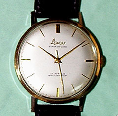 のっけからラコーであります。これを知っているあなたはかなりの時計通ですよ。かつて日本には「TAKANO時計」という幻の時計メーカーがありまして、伊勢湾台風で被害を被ってRICOの傘下に入ってしまったという会社なのですが、そのTAKANOのムーヴメントはこのLacoが使われていました。ですから修理の場合などに部品をお互いに流用できます。Lacoはドイツ空軍の飛行船用ウオッチ(実物を見ましたが通常の物よりふたまわり大きいサイズでした)などが有名です。