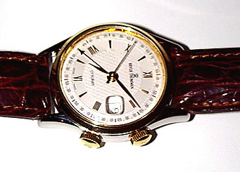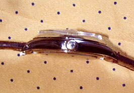 八王子の某ディスカウントショップで半額にて購入した直後に止まる、交換してもらっても再度止まる、さらに交換したが治らず、仕方ないので自由が丘の時計店某アライに修理を依頼したら、1発で精度も上がり快調!!この店の技術力には定評があるのです。以来トラブル知らずで毎日元気に動いています。金メッキは厚さ10ミクロン(国産だと5ミクロン程度なので緑青が出やすい)。 ムーヴメントはCal.574タイプ、45時間のパワーリザーブ。oris2.jpg: