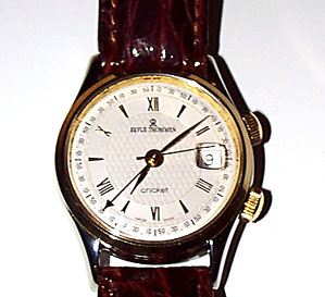 音の出る腕時計や懐中時計には他に「ミニッツ・リピータ」というものがあります。それはボタンを押すと時・分などをチャイム(アラームではない)で知らせてくれるので暗闇でも時刻がわかるというゼータクなものですが、私の知る範囲では80万円程度?が機械式では最低価格帯でしょう、数百万円以上とかもあります、ははは...。
