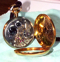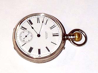 ウオルサムはアメリカの鉄道が発展期に正確なダイヤを実現すべく開発された時計でもあります。ムーブメントはもちろんアメリカ製ですが、輸出されて各国の銀ケースとかに組み込まれて販売されたので、たいていのものはケースと製造年が異なります。この時計の場合はムーブメントは1885年ですが銀ケースは英国ホールマーク(イカリマークとP記号)より1889年にバーミンガムで製作されたものと推定できます。